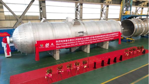 目前,“高效冷氢化反应器及成套装备关键技术与应用”技术成果已形成显著市场竞争力,广泛应用于协鑫集团、通威集团、新特能源等多家光伏行业龙头企业的高纯晶硅项目,为客户提升生产效率与市场优势提供了有力支撑。项目的成功,不仅增强了我国光伏装备的国际竞争力,也为全球光伏产业高效化、绿色化转型提供了可复制的中国方案。2024年,中圣国产化多晶硅核心装备首次出口至中东阿曼,实现国产冷氢化反应器国际市场突破,向世界展示了中国工业创新实力。