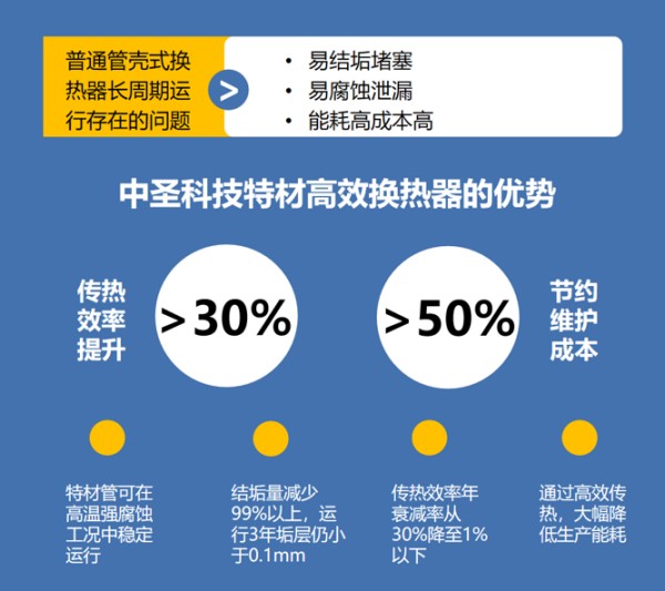 在高端装备领域,材料耐腐蚀性、传热效率与长周期稳定运行是长期制约产业发展的“痛点”。面对技术瓶颈与运维成本高昂的双重挑战,中圣科技聚焦“特材智造+换热强化+智能检测”三大核心技术,构建起自主可控的技术体系,持续推动关键装备国产化替代。